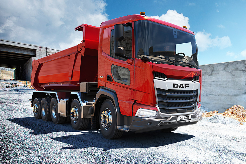 DAF Trucks kliver nu in i den tyngsta ligan av anläggningsfordon. Det femaxliga FAF-chassit är utrustat med en tridem bestående av en dubbeldriven tandemaxel och en lyftande, styrd bakaxel. Kombinationen är avsedd att ge både hög nyttolast och utmärkt manövrerbarhet.